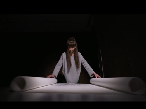Dokumentacja wideo prezentująca najważniejsze etapy generowania rysunku przez algorytm. Algorytm wygenerował 10 700 klatek interpretując 18 minut nagrania oddechu Aleksandry Pieńkosz.