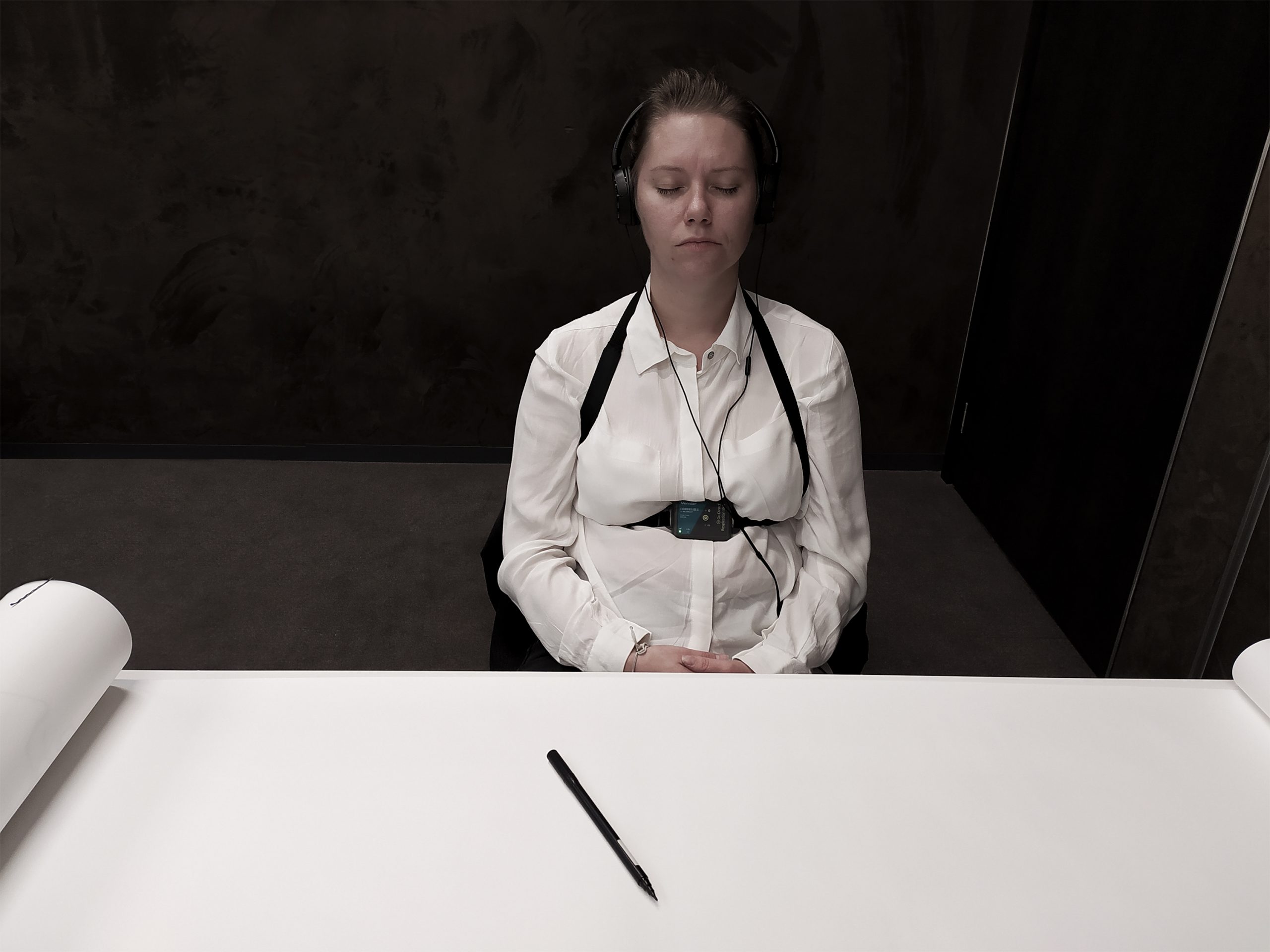 Dokumentacja wideo prezentująca najważniejsze etapy generowania rysunku przez algorytm. Algorytm wygenerował 930 klatek interpretując 15 minut nagrania oddechu uczestniczki.